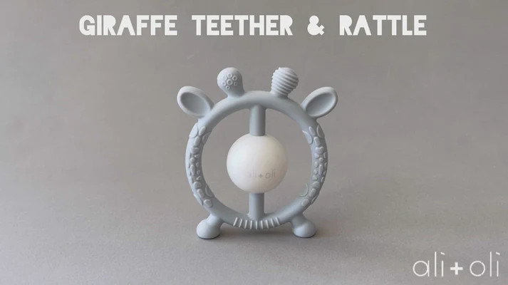Crafted with safe, BPA-free silicone, this Ali + Oli teether is soft and gentle on sensitive gums. The giraffe's textured surface provides added relief during teething, while its easy-to-grasp design makes it ideal for little hands. The gentle rattle sound stimulates auditory development and adds an extra element of fun.