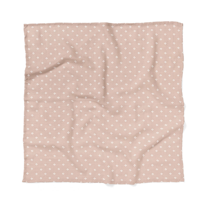 The unique boho square design adds a touch of charm to this must-have item. Lightweight and easy to care for, this swaddle is ideal for swaddling, using as a stroller cover, or even as a nursing cover. Its generous size makes it versatile for various uses. The beautiful "Pink Sand" color palette provides soft and stylish appeal.