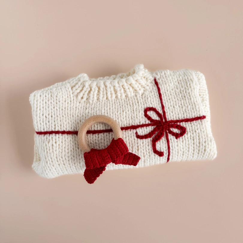 Cotton Crochet Teether Red Bow OUT OF STOCK