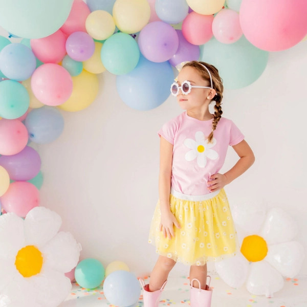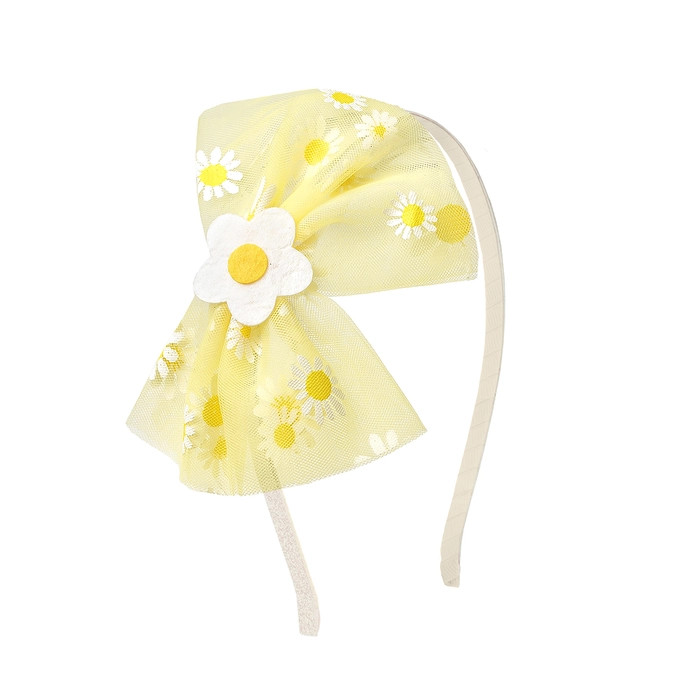 The Daisy Bow Kids Headband is the perfect kids hair accessory for celebrating Spring! This Sweet Wink clip has a yellow tulle bow accented with white daisies. The inside of the headband is lined with white satin ribbon for comfort and the outside of the band is decorated with white glitter (don't worry - the glitter doesn't shed!). Pair this kids headband with the Daisy Shirt and Daisy Tutu for a complete head-to-toe Spring time outfit!