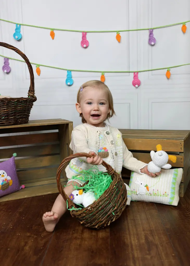 Bright Easter colored bunnies and carrots on this charming garland perfect for Spring décor. Our crocheted garlands are handmade in Armenia. This collective was started with seed funding from Save the Children to create jobs and help promote Armenian crafts. The project employs women who were previously without work in Armenia’s struggling economy. They enjoy a safe work environment and earn a living wage with a respect for their cultural traditions. Their expert artisanship can be seen in the quality of our products.