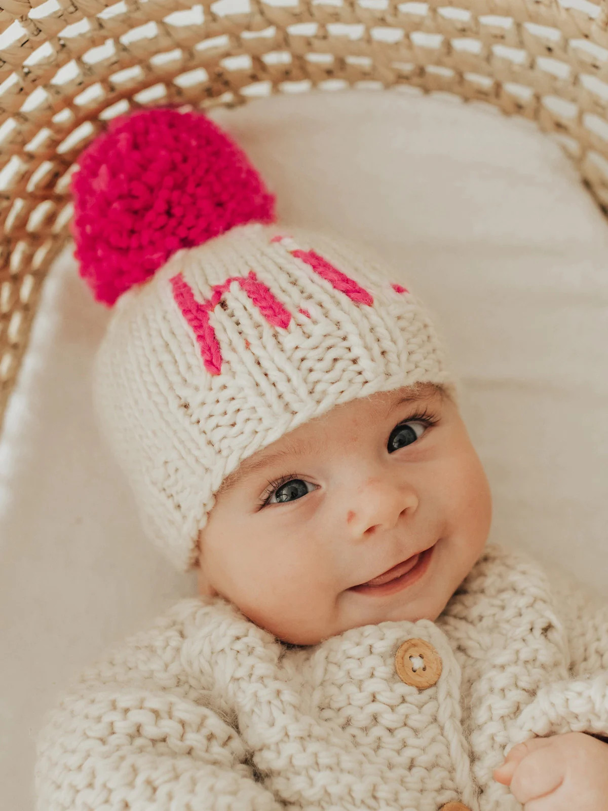 Introducing the hi. Neon Hand Knit Beanie Hat from Huggalugs. This new, hand-knit beanie is the perfect accessory to add a pop of color and cozy warmth to your wardrobe. Crafted with care, this Huggalugs beanie offers a unique and stylish look.