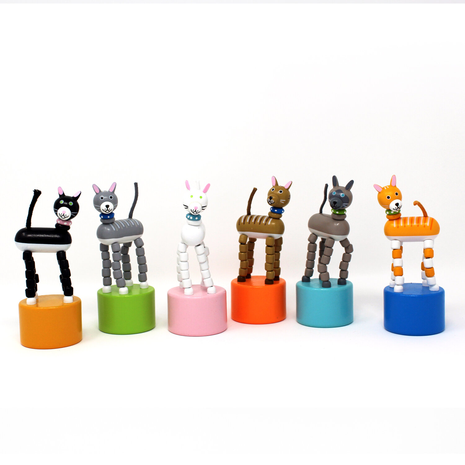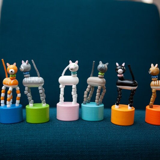 This set of six adorable kitty push puppets is perfect for collectors and children alike. The high-quality construction ensures durability, making them ideal for both play and display. Looking for a classic toy that encourages fine motor skills and imaginative play? This set from Jack Rabbit Creations is purr-fect!