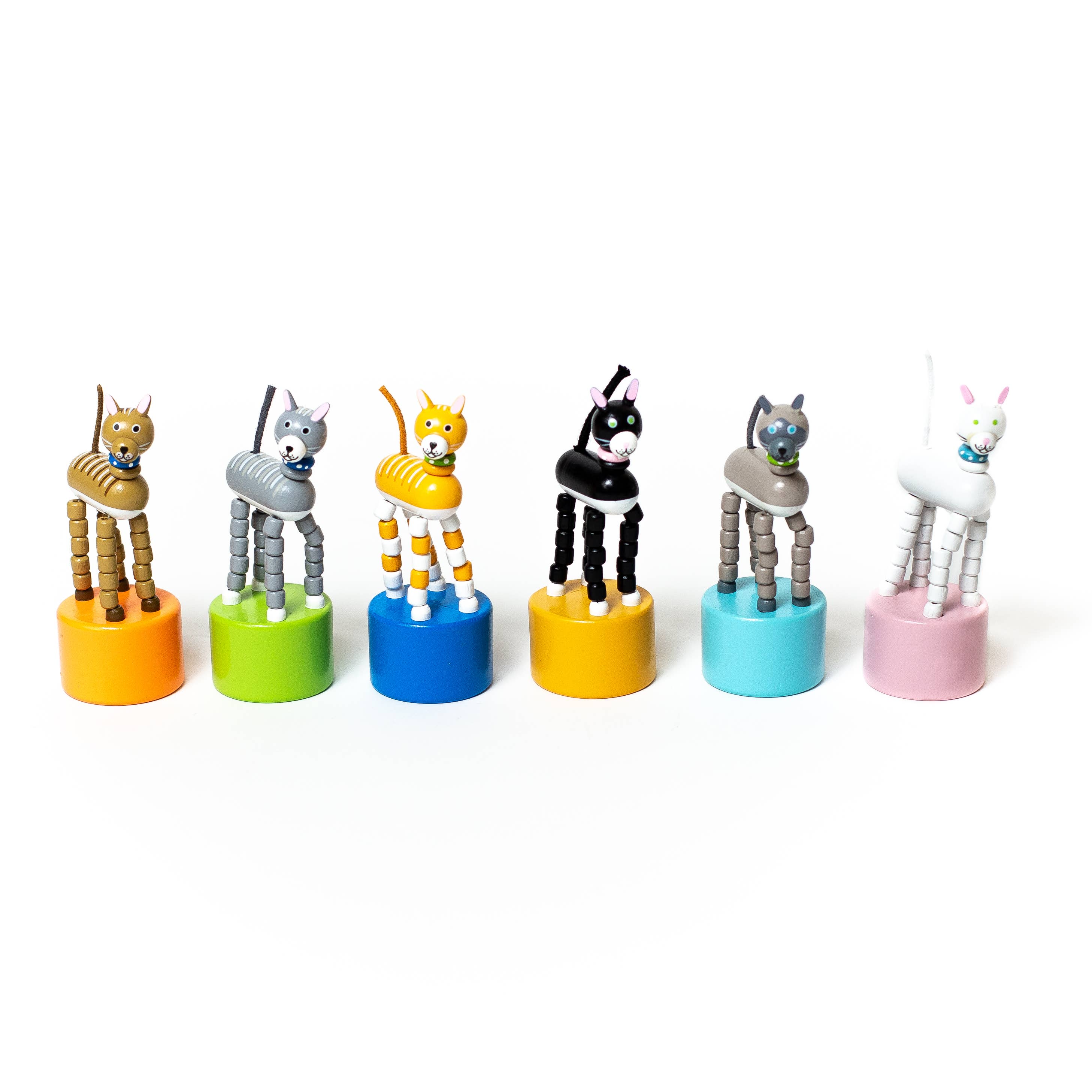 Bring a delightful dose of whimsy to playtime with the Kitty Push Puppets - Set of 6 from Jack Rabbit Creations! These charming push puppets offer hours of entertainment as they collapse, dance, and stand tall with a simple push of the base. Crafted with care, each kitty is uniquely designed to spark imagination and creativity.