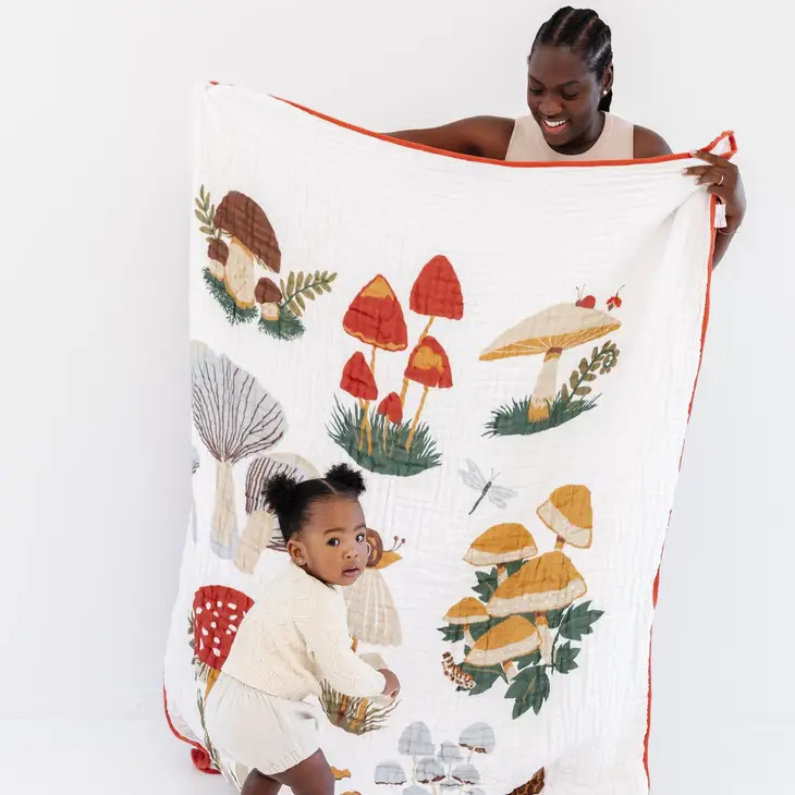 Crafted with the quality Clementine Kids is known for, this blanket is sure to become a treasured keepsake. The generous size makes it ideal for toddlers and young children. Explore the magical world of the mushroom quilt and create lasting memories with this soft and comforting blanket.