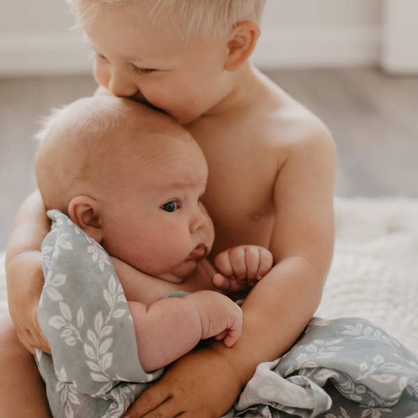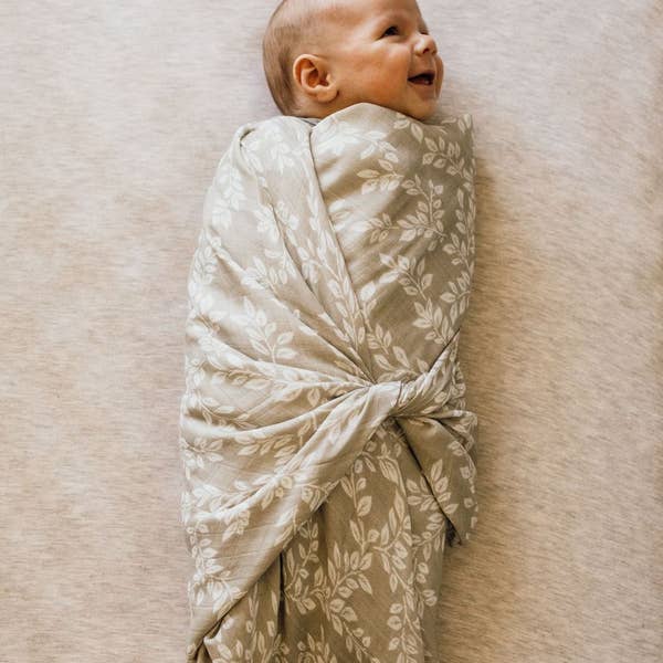 Leafy Sprig Swaddle Gray