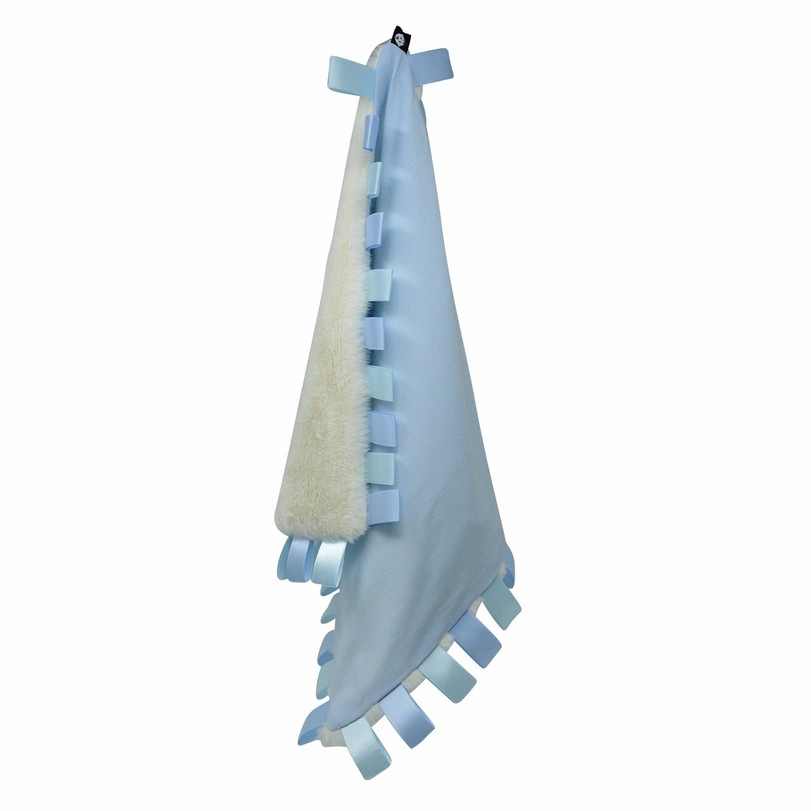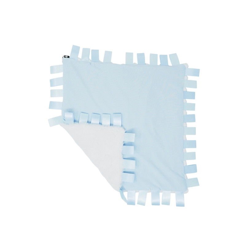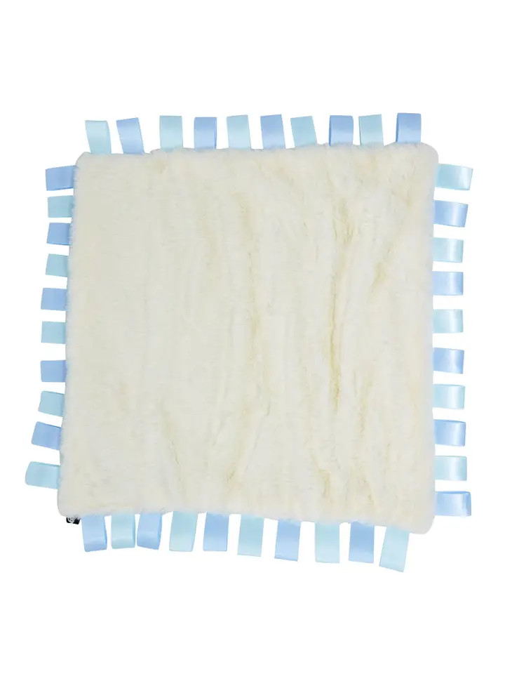Wrap your little one in pure comfort with this blue lovey. This 12x12 inch square is the perfect newborn gift, featuring the softest fabric on top, plush fleece underneath, and an array of sewn-in looped ribbons for endless tactile exploration. Babies will delight in the calming, developmental benefits of Lovie's textured tags, providing the sensory stimulation their growing minds crave.