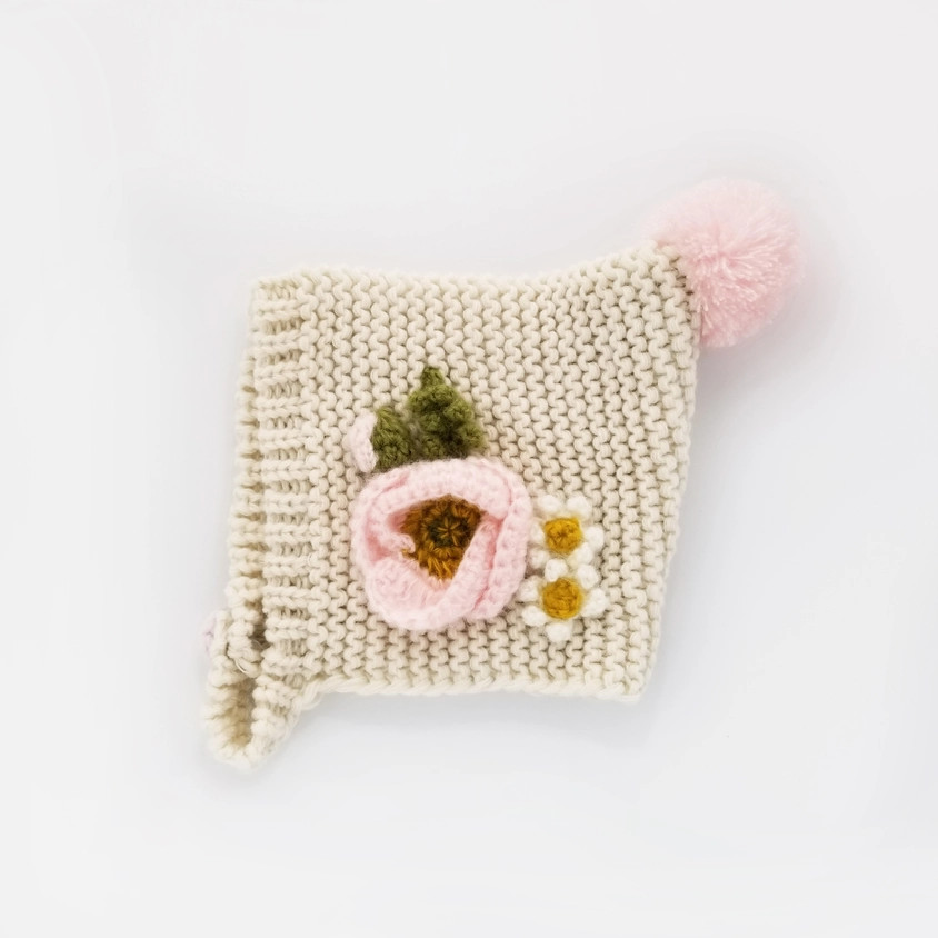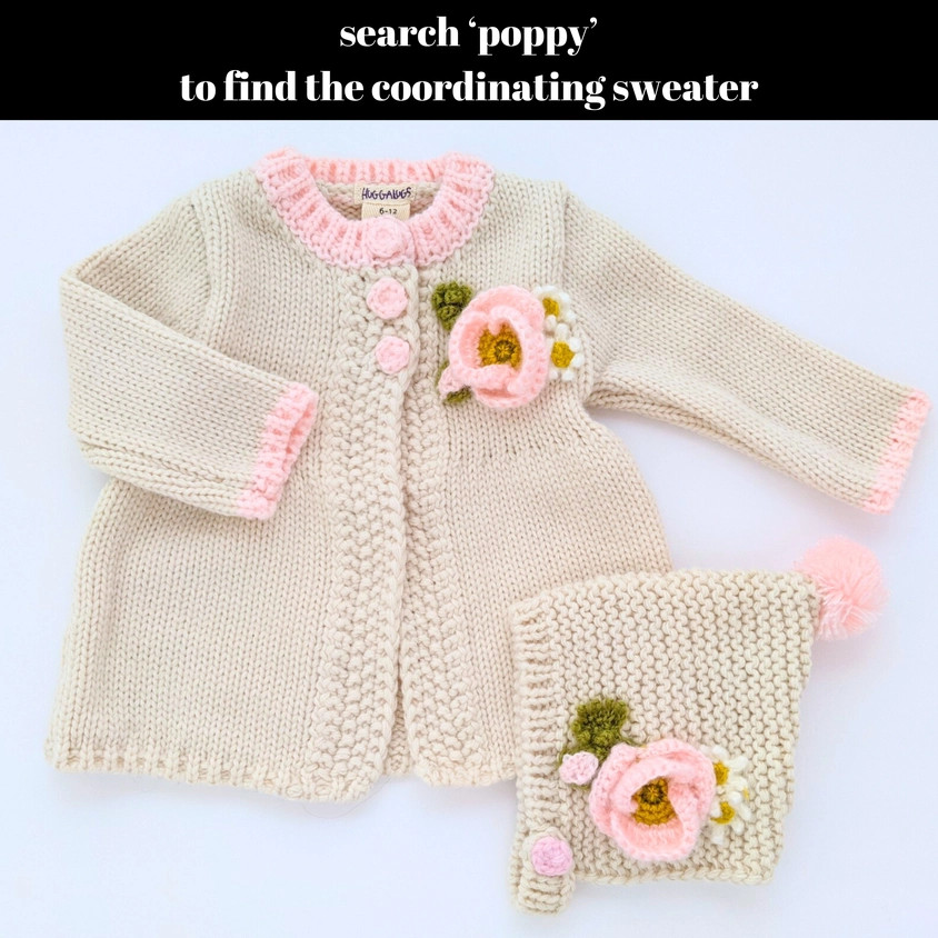 Whether you call it a floral bonnet or simply adore its delicate details, this Huggalugs creation is sure to please. The soft and comfortable material ensures a snug fit, while the beautiful poppy accents add a touch of nature-inspired elegance. This garter stitch bonnet is ideal for keeping your little one warm and stylish.