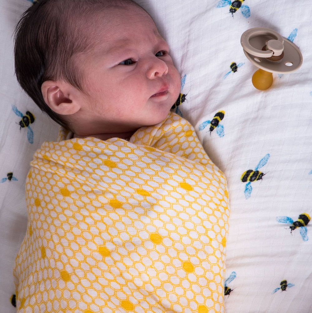 Pre-washed, luxuriously soft organic cotton muslin swaddle that gets softer after every wash. Made from gots certified cotton threads. Lightweight and breathable - gentle on baby's delicate skin. Perfect for hospital newborn photo shoots!