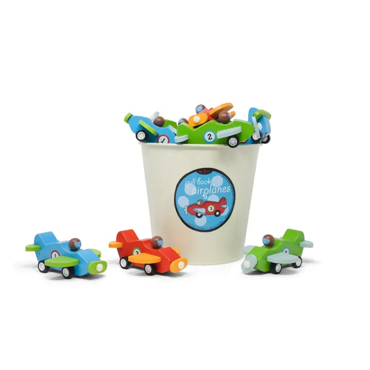 Crafted from durable, sustainably sourced wood, these planes are built to withstand hours of playtime fun. The simple yet engaging pull back airplane mechanism allows even the youngest aviators to easily launch their planes across the room. Just pull them back, release, and watch them go!