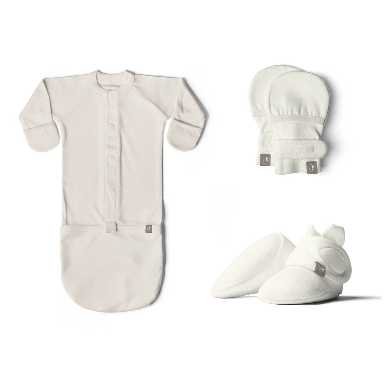 Includes our signature 24-hour convertible gown for easy changes from midnight to morning, plus our stay-on mitts and boots to keep tiny hands and feet warm, protected, and secure.