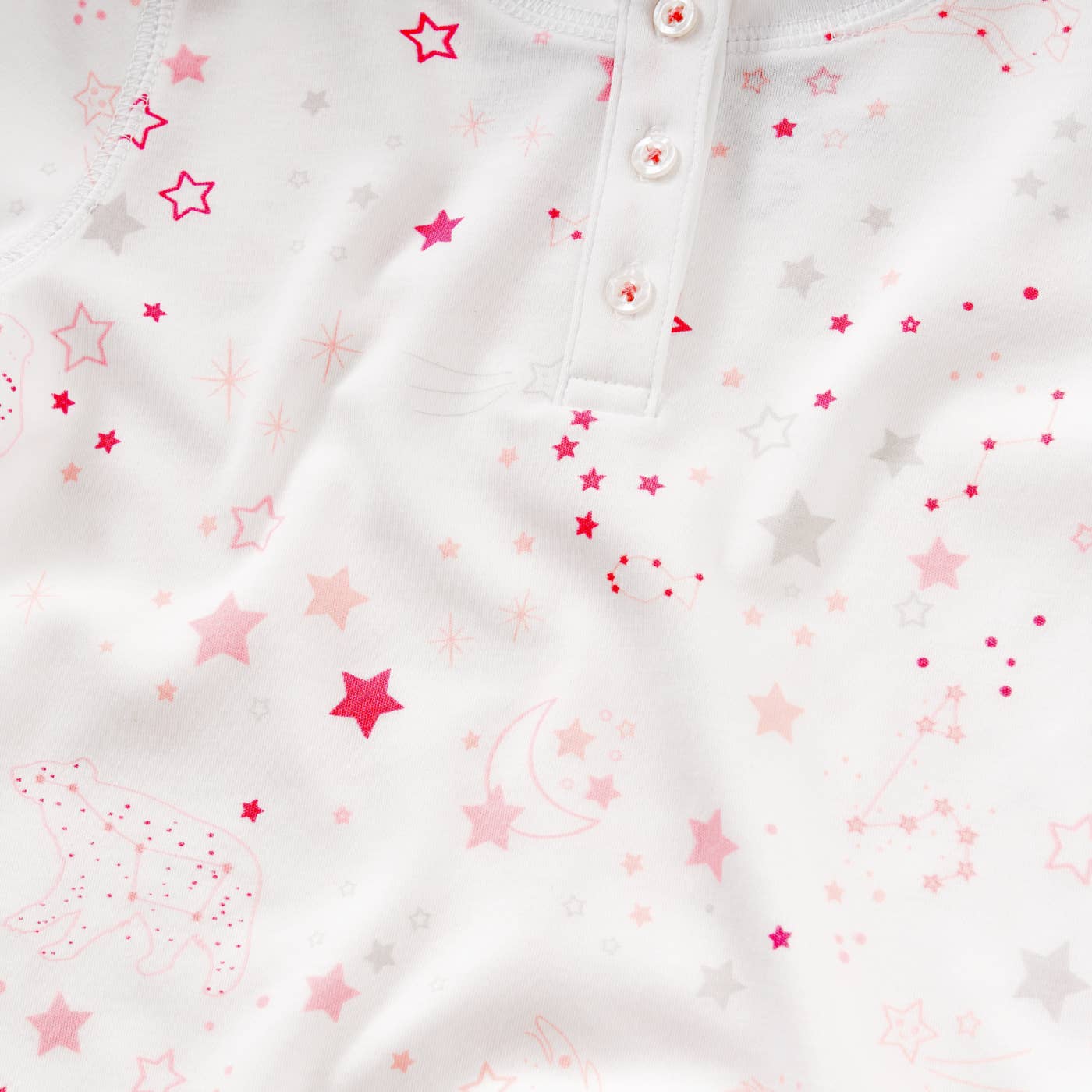 Twinkle Twinkle Little Star...this sweet print allows your little one to shine bright amidst the night sky and constellations... Original print, hand drawn design inspired by the summer nights. This print is also available in a baby onesie with matching blanket & knotted hat. 100% Pima cotton, snug fitted children pajamas. Fair Trade, WRAP certified (our manufacturers have been certified to provide fair wages and safe working conditions).
