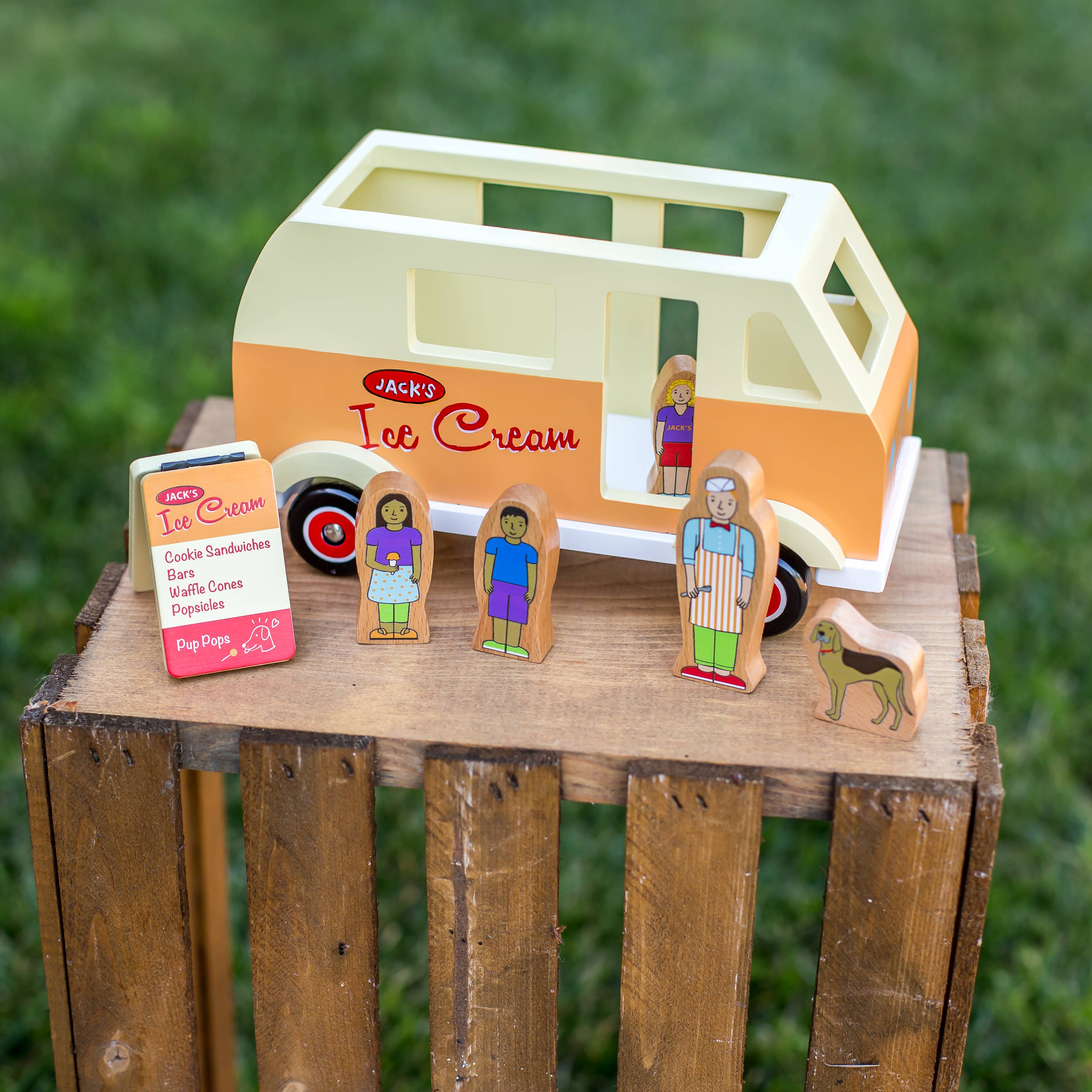 This magnetic truck is perfect for children who love pretend play and sweet treats toy adventures. Whether they're serving up imaginary scoops of ice cream or driving around town, the possibilities are endless. Add a touch of whimsy to playtime with Jack Rabbit Creations' commitment to quality and engaging design. This Jack Rabbit Creations ice cream truck is durable, safe, and ready for countless hours of fun.