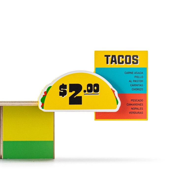 You know by now that we worship our taco truck. So much so that we decided their business needs to expand with a proper roadside shack! Our newest Candylab Toys stac sets are modular building blocks that are ready for play - you can combine signs, roofs, and multiple blocks with a clever all-wooden system. Playful carchitecture play at its best. Pairs perfectly with its matching food van, sold separately. Our food shacks are the perfect wooden toy for summer days by the beach, park, or backyard sunshine play! Montessori approved!