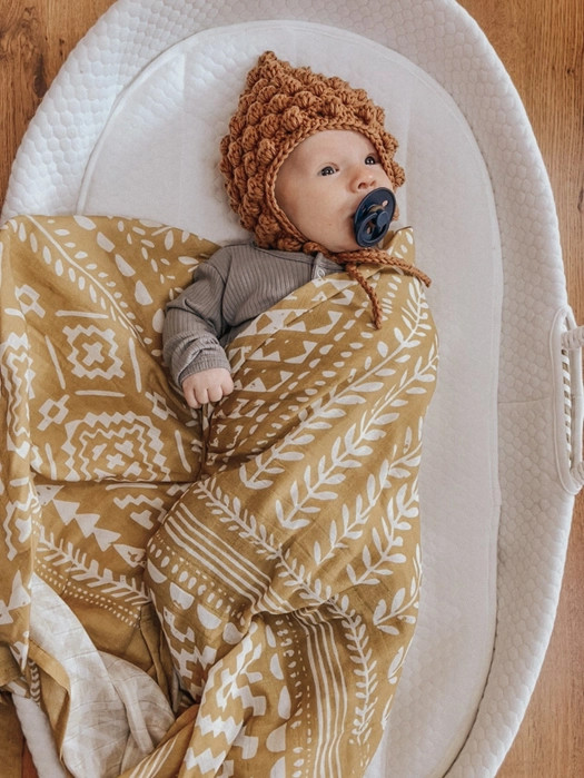 Made with lightweight muslin swaddle fabric, it ensures breathability to prevent overheating, keeping your little one comfortable in any season. The Tapestry Honey Gold Swaddle is easy to care for, machine washable, and designed to withstand everyday use. A beautiful addition to the Mini Wander collection. This gold swaddle is a must-have for new parents.
