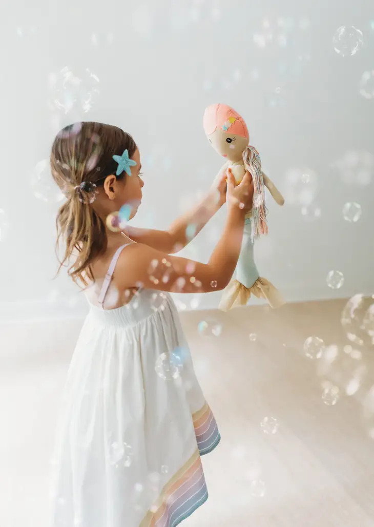 The Shine Doll ll is a soft + huggable rainbow mermaid that encourages acts of kindness!