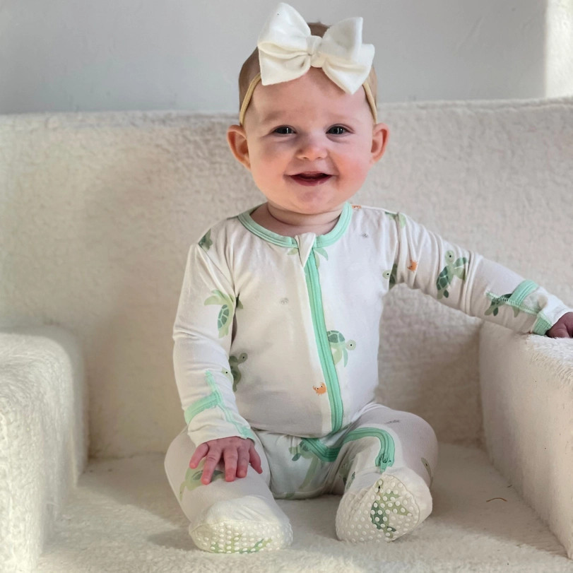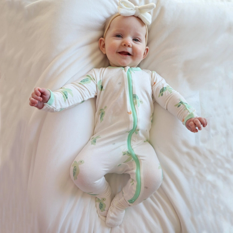 Introducing the adorable Turtle Zippered Footie from Bamboo Little.